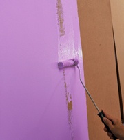 – Pinte a parede com a cor de fundo (exemplo violeta) e deixe secar muito bem. |